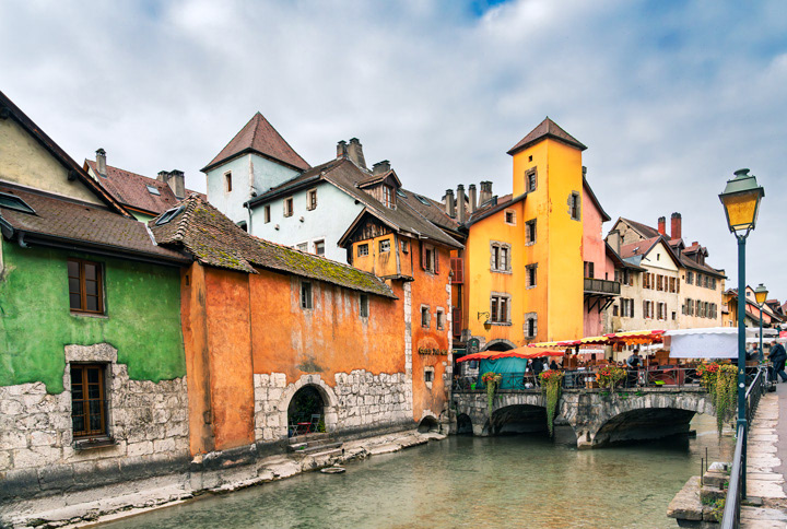 Annecy, centre historique médiéval surnommée la Venise des Alpes. France.