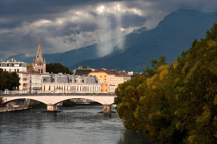 La rivière Isère longeant le centre historique de Grenoble en octobre dernier. France 2025.